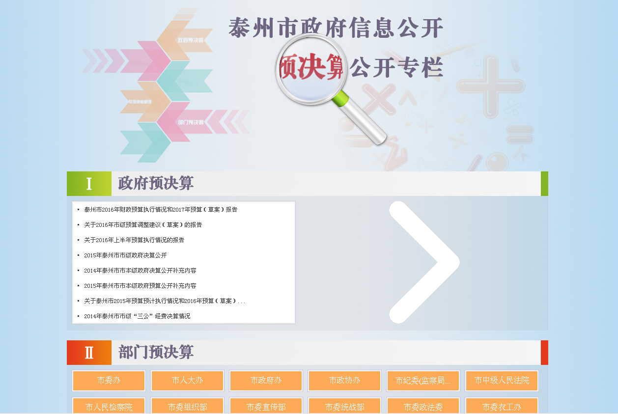 3.做好預決算信息公開平臺(欄目)完善工作。根據規范財政預決算信息公開、深化陽光透明政府建設的要求,提請市政府辦進一步完善市本級預決算信息公開平臺。一是在政府信息公開首頁設置“預決算公開”模塊,二是在“預決算公開”模塊設置“政府預決算”、“部門預決算”、“專項資金管理清單”、“專項資金使用管理”、“預算績效管理”、“資產管理”、“政府采購”等公開專欄,以便市級政府和部門集中、分類公開相關信息。